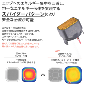スパイダーパターンは、熱を広い範囲に届けて総合的なたるみ改善効果を出す照射デザイン。